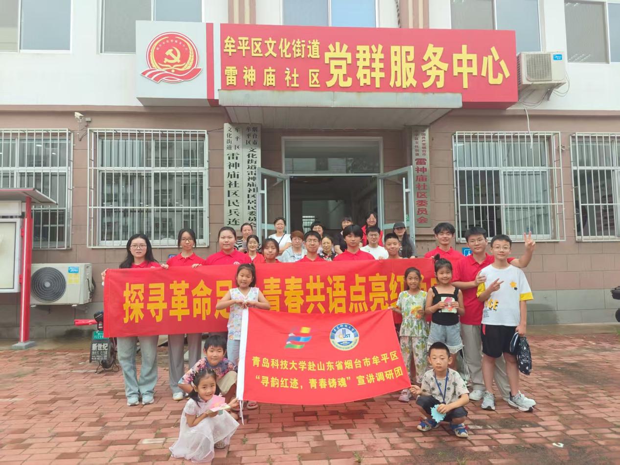 为深入贯彻落实习近平总书记“将红色资源作为坚定理想信念、加强党性修养的生动教材”的重要指示精神,持续推动红色基因传承,2025年7月16日,经管学院“寻韵红迹,青春铸魂”红色精神宣讲团前往烟台市牟平区平安街道雷神庙社区,开展主题宣讲与调研活动。
