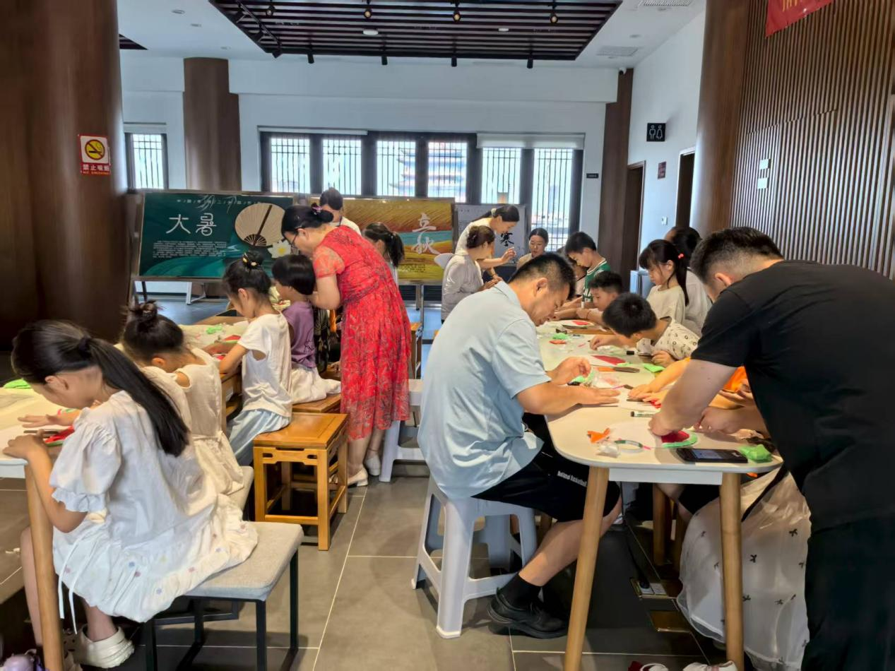实践活动中,团队联动当地非遗传承人,打造了一场“沉浸式”非遗体验盛宴。手工课堂里,红纸在指尖翻飞,剪刀游走间,一张张寓意吉祥的剪纸作品渐显雏形;竹篾搭架、彩纸糊面,家长与孩子默契配合,亲手扎制的纸鸢上,既有“连年有余”的传统纹样,也有孩子们涂鸦的童真图案,每一件作品都承载着对非遗的好奇与热爱。