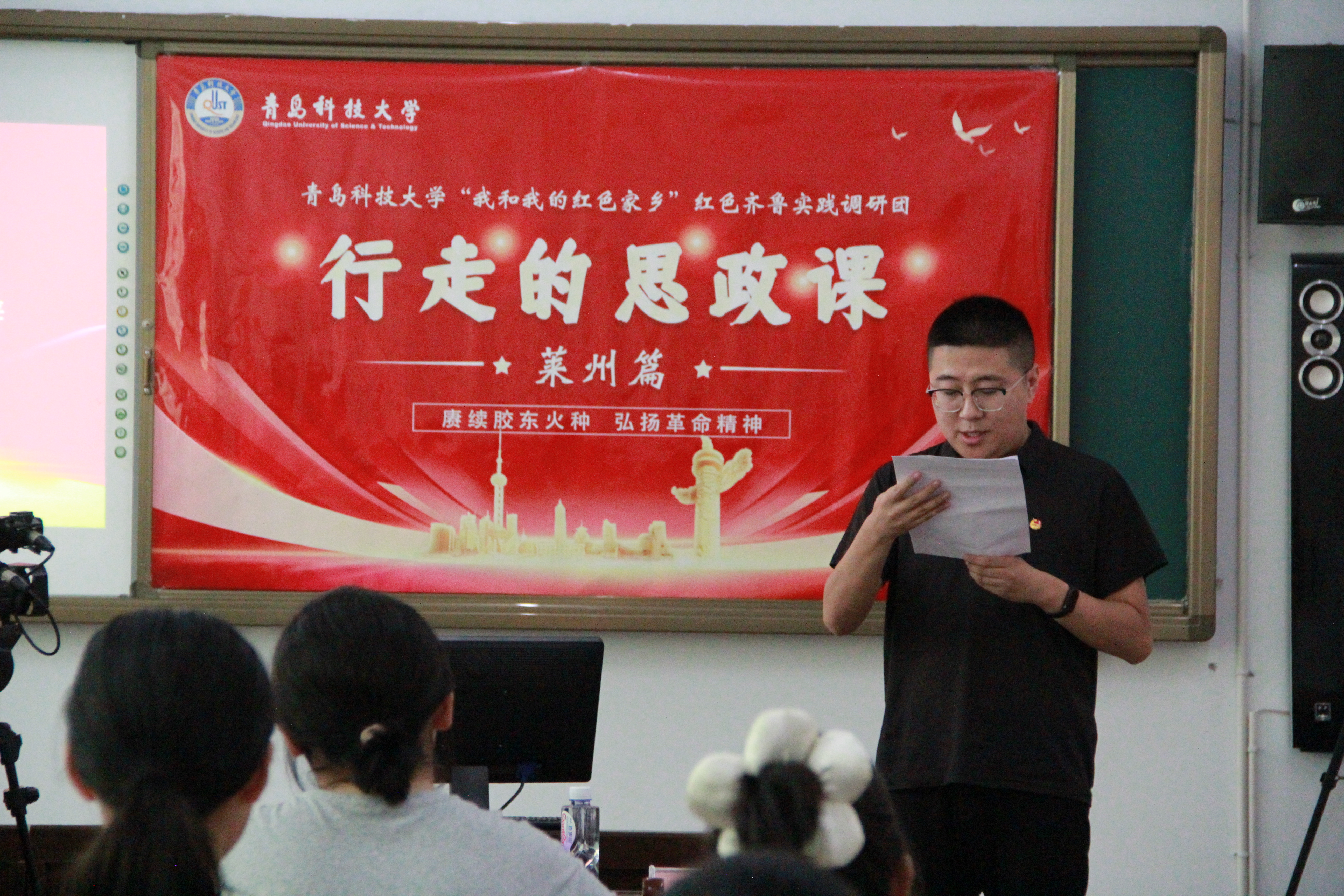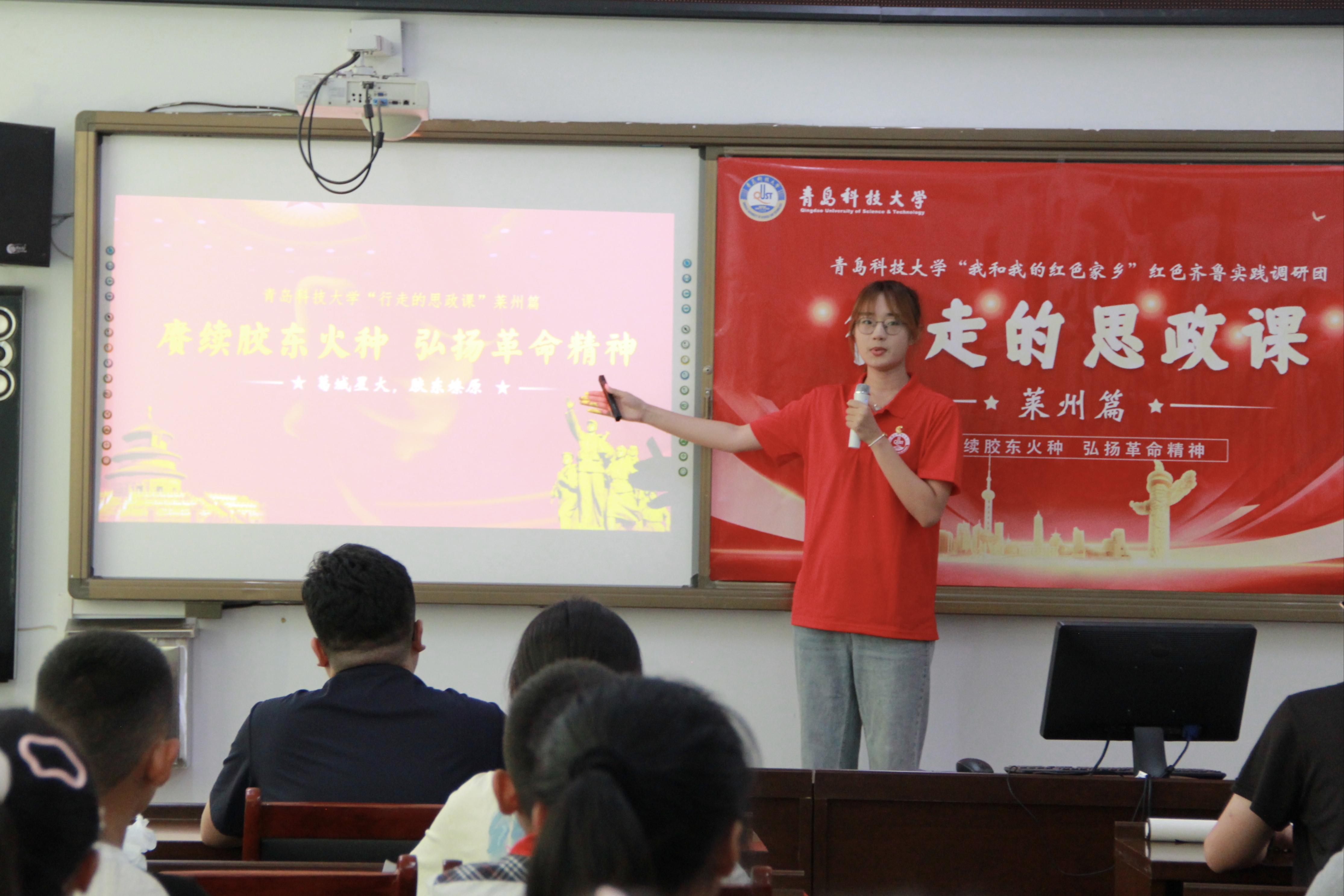 此前,实践团已深入莱州市葛城村、非遗毛笔小镇、烈士陵园、西海地下医院及革命历史馆等地,在探访中触摸胶东革命圣地的红色记忆,梳理当地文化脉络。活动伊始,一段记录实践团红色足迹的视频,带领同学们沉浸式感受家乡的红色历史与文化底蕴。莱州市团市委书记方京在致辞中,对实践团创新传播红色文化的形式给予肯定,强调青少年是传承红色基因与优秀传统文化的核心力量,鼓励实践团成员继续发挥青春优势,当好红色文化的传播者与守护者。