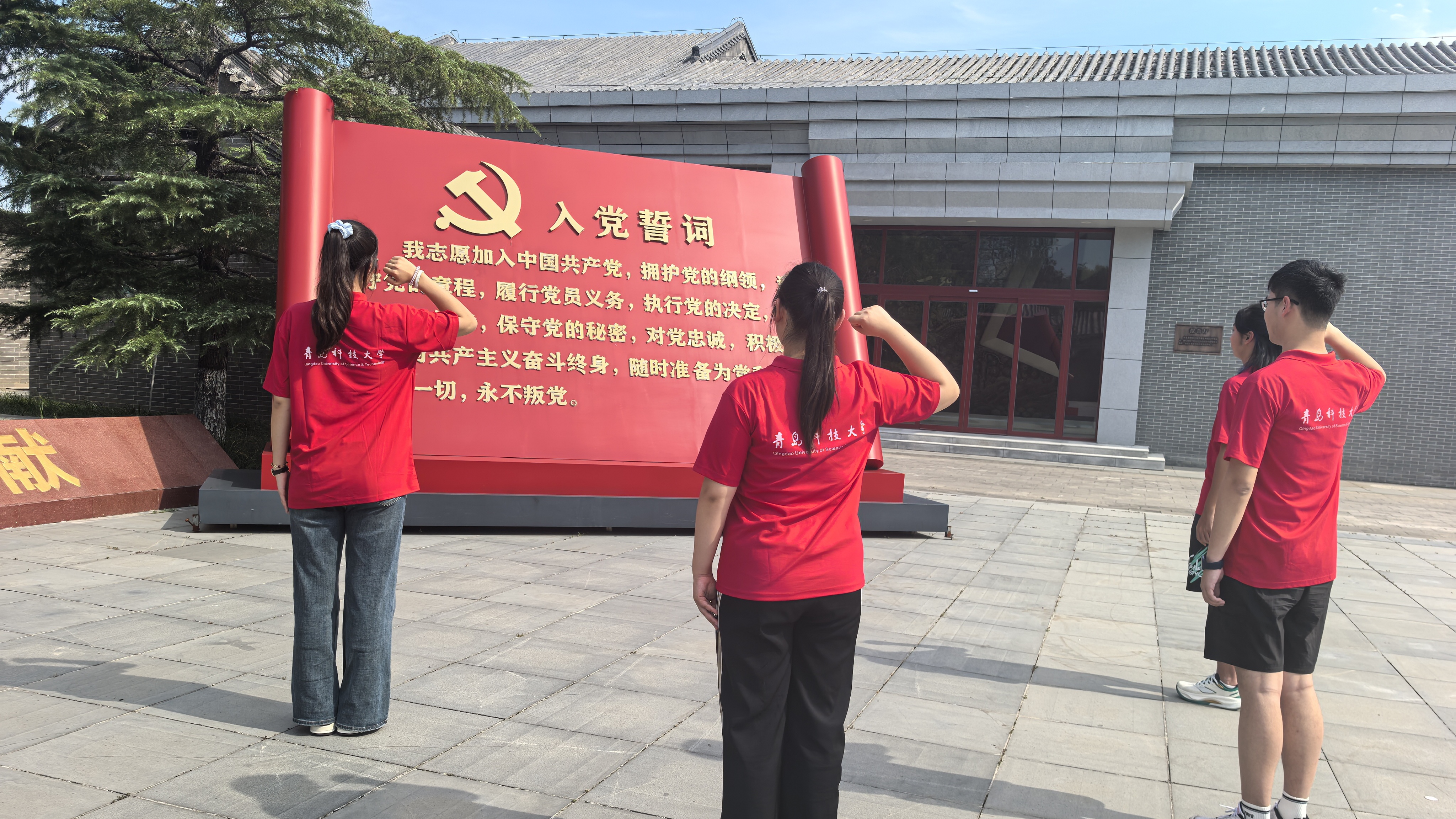 参观结束后,实践队在旧址前围站,专注地学习入党誓词。伴随着嘹亮的宣读声,队员们体会到“为共产主义奋斗终身”的铮铮誓言,誓把红色精神融入青春航向,在实践中锤炼品格、增长本领,让理想信念在奋斗中绽放光彩。