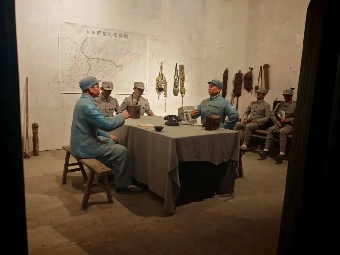 在讲解员的带领下,我们系统参观了“战史陈列”“司令部作战室”等主题展区,了解到华东野战军在陈毅、粟裕等将领指挥下,转战山东、江苏、安徽等地,参与了宿北战役、鲁南战役、莱芜战役、孟良崮战役、淮海战役等重要战役。其中,孟良崮战役全歼敌方“五大主力”之一的整编第74师,沉重打击了敌方军队的嚣张气焰;淮海战役更是以60万兵力对抗敌方80万兵力,创造以少胜多的军事奇迹,为解放全中国奠定了坚实基础。此外,还聆听了许多感人至深的“沂蒙红嫂”故事,她们送子参军、救伤员、做军鞋、筹军粮,以“最后一碗米,送去做军粮;最后一尺布,送去做军装;最后一件老棉袄,盖在担架上;最后一个亲骨肉,送去上战场”的无私奉献,深刻诠释了“军民鱼水情”的厚重内涵。