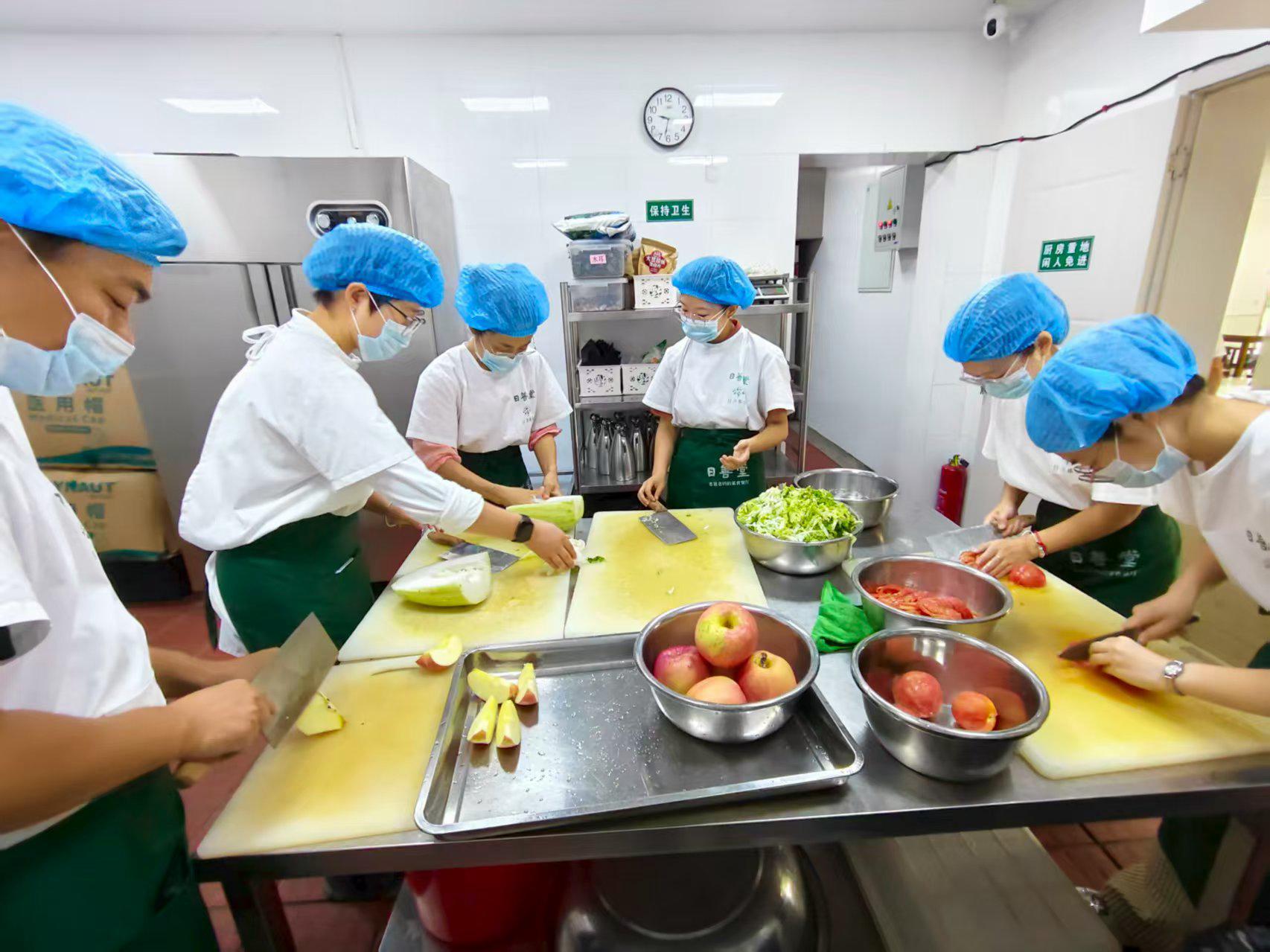 实践团成员清晨抵达后,迅速投入餐食准备工作。厨房内,团队成员们细致清洗蔬菜、精准切配食材,协作完成生火、炒菜、熬粥等工序,用严谨态度保障素食的健康与美味。这一过程不仅锻炼团队协作能力,更让大家体会到“一粥一饭当思来之不易”,以实际行动践行节约理念,为老人们的餐食安全筑牢防线。