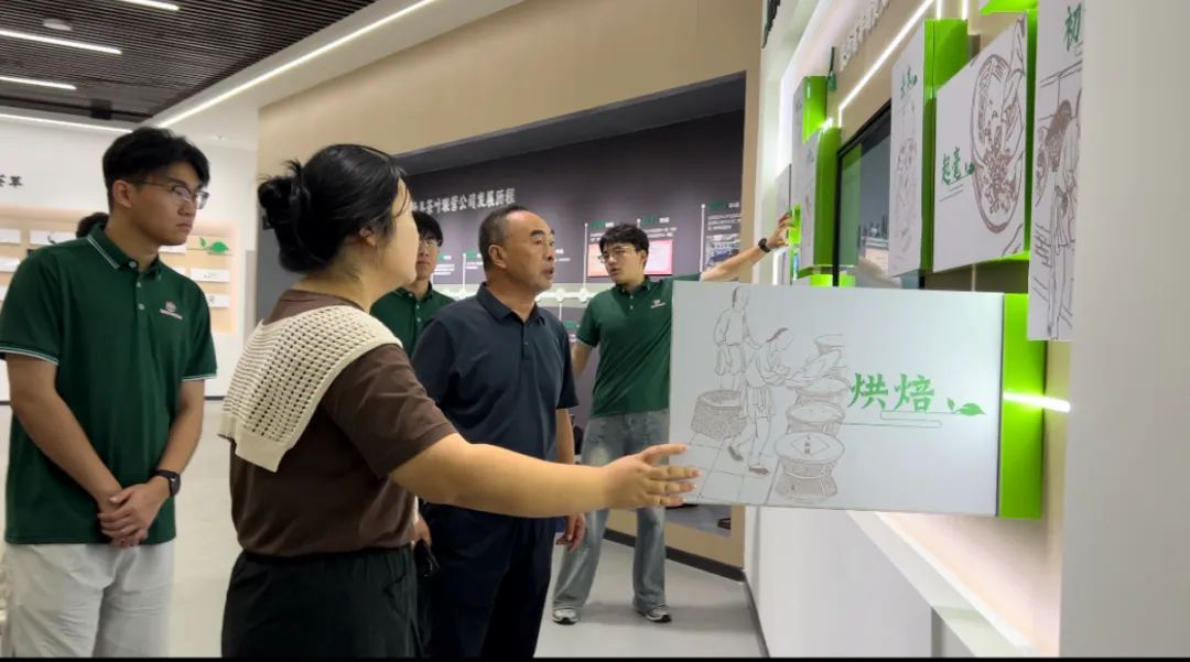 随后,企业负责人带领实践团参观商南茶叶博览馆。在其中团队成员了解了商南茶业从引种试验、奠基发展阶段到升级转型、高质量发展阶段的产业发展历程以及商南茶业发展的地理优势、环境优势。