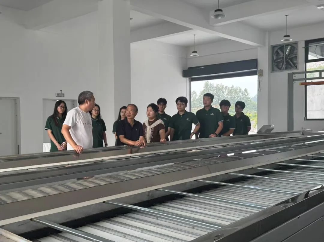 走进商南茶叶生产车间,自动化传送装置有序输送鲜叶,不锈钢炒茶机、智能揉捻设备排列整齐。负责人用一口流利的普通话向实践团讲解了自动化、数据化与人工相结合的制茶模式,传统工艺现代设备相结合的生产方式以及制茶过程中的细节控制、温度把控等问题。全程用普通话为实践团讲解了茶的生产过程、生产特色,使团队成员对许多工艺细节“一目了然”。