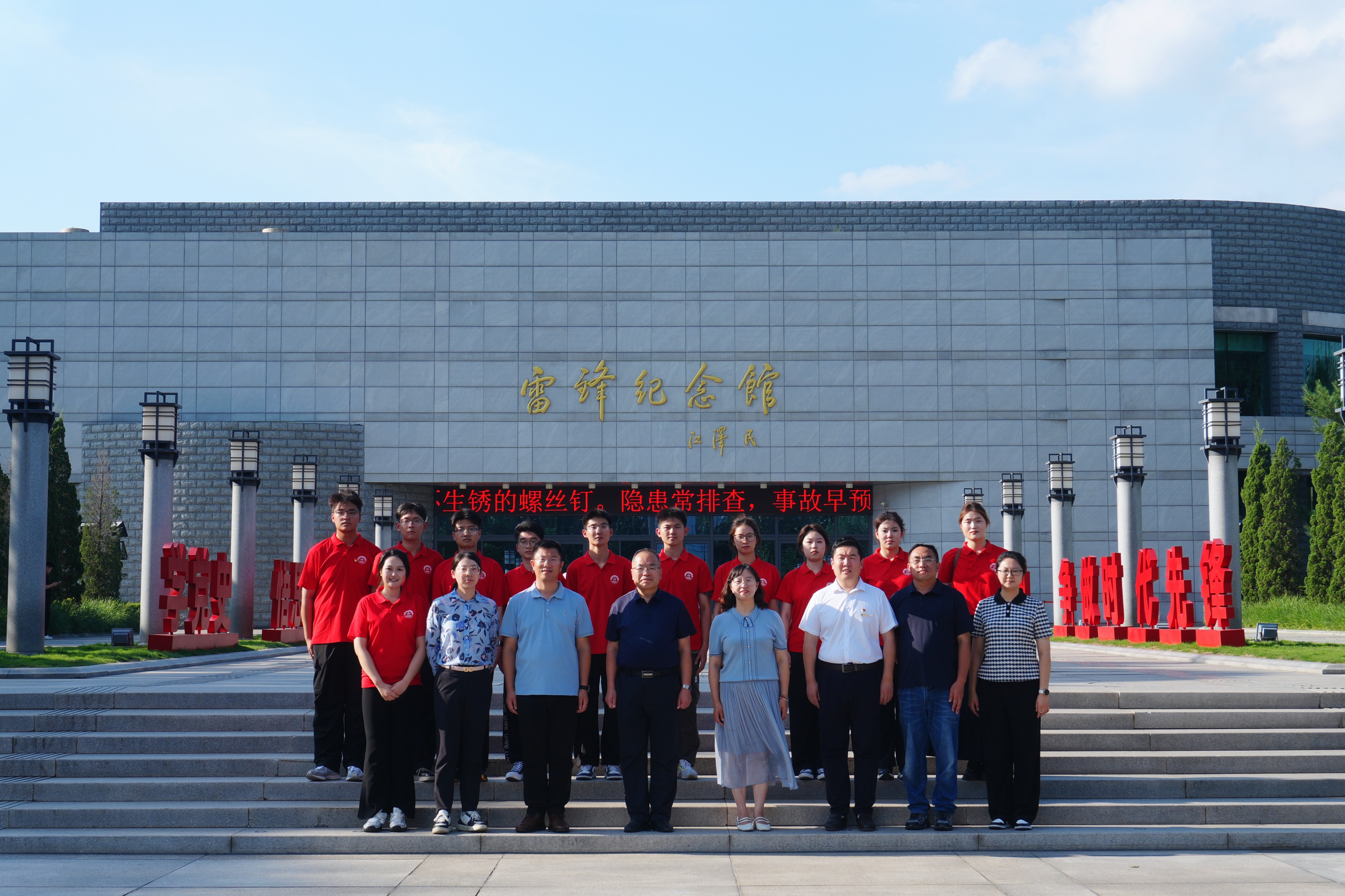 8月2日,766全讯白菜网党委常委、副校长丁林,党委学生工作部部长王丽,校团委书记刘跃宁一行前往辽宁省抚顺市雷锋纪念馆,走访慰问中德科技学院“传承雷锋精神,青春挺膺担当”暑期社会实践团,实地察看活动开展情况并给予现场指导。中德科技学院党委副书记兼副院长张大伟、团委书记兼学工办主任李怡然陪同走访。