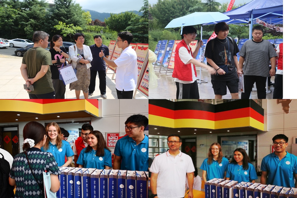 暖心新生礼包:中德志愿者同心递关怀。迎新现场,来自德国锡根大学的托马斯·屈勒博士和3名帕德博恩大学留学生化身志愿者,将“新生大礼包”亲手递到每位新生手中。礼包内含适配初秋的降温贴,更有辅导员书写的给新生的一封信,从物资到文字满含心意;中德师长的共同参与,让新生在接过礼包时,亲身感受到了学院浓厚的国际化氛围和师生的真切关怀。