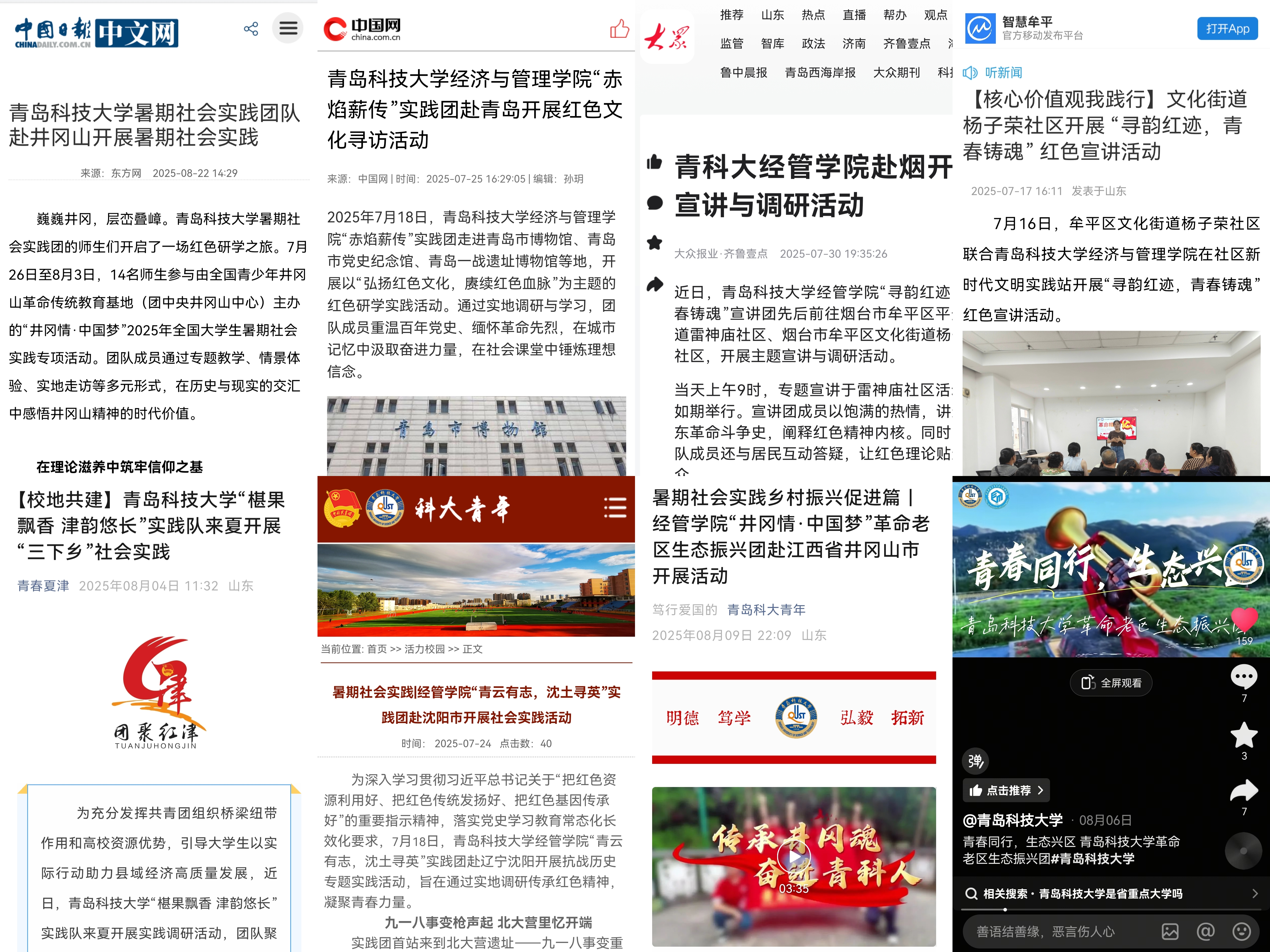 本次暑期“三下乡”社会实践活动,经管学院构建“理论学习+实地实践+成果转化”的育人闭环,实践中形成的多项成果成功转化为服务地方发展的实际举措:农村电商提质增效建议被当地合作社采纳应用,基层治理建议为社区规划提供重要参考。这些成果的转化不仅体现实践活动的实际价值,更让学生们深刻体会到“纸上得来终觉浅,绝知此事要躬行”的道理。广大青年在服务社会中提升专业能力,在奉献他人中强化责任担当,真正实现“实践出真知,青春献祖国”的育人目标。